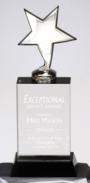 - Silver Metal Star on Crystal Base