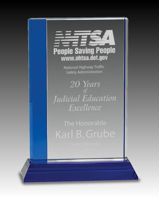 - Clear Blue Stripe Crystal on Pedestal Base