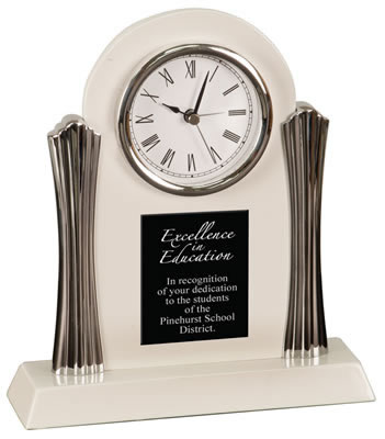 High quality desk clocks are ideal for awards and gifts. All clocks have enough room for a personalized message and your companies logo. If you're looking for something different than a plaque or standard award, a clock is a perfect alternative.